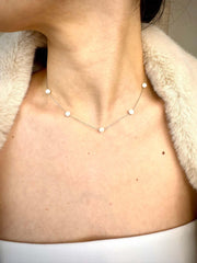 Colorful Dangle Station Necklace In Rose Gold Plating