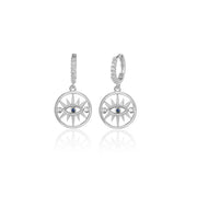 Evil Eye Charm Hoop Earrings In Sterling Silver