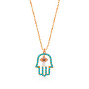 Hamsa Pendant & Chain Necklace In Rose Gold Plating