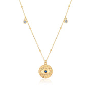 Blue Evil Eye Pendant and Chain Necklace In Gold Vermeil