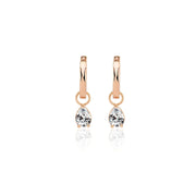 Tear Drop Charm Hoop Earrings in Rose Gold Plating