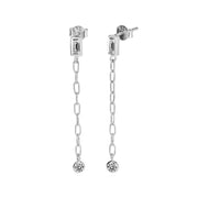 Dangling Paperclip Tennis Chain Earrings In Sterling Silver