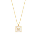 Square Handmade Enameled Pendant & Chain In Gold Vermeil