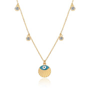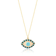 Blue Evil Eye Pendant and Chain Necklace In Gold Vermeil