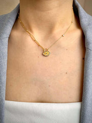 Handmade Enameled Round Pendant & Chain Necklace in Gold Vermeil
