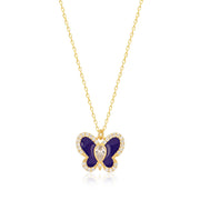 Handmade Enameled Blue Butterfly Pendant Necklace In Gold Vermeil
