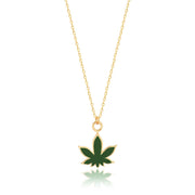 Handmade Enameled Marijuana Leaf Pendant & chain In Gold Vermeil