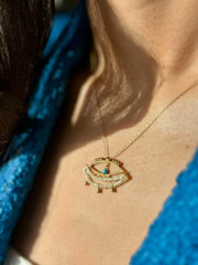 Enameled Evil Eye Pendant & Chain In Gold Vermeil