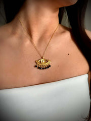 Dangling Evil Eye Pendant & chain In Gold Vermeil