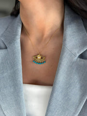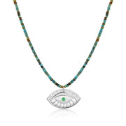 Evil Eye Pendant & Handmade Turquoise Bead Necklace In Sterling Silver