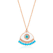 Handmade Turquoise Evil Eye Necklace In Rose Gold Plating