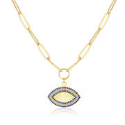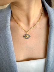 Niligem Evil Eye Paper Clip Necklace In Gold Vermeil