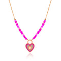 - Add a little charm and sparkle to your outfit with this lovely heart lock necklace! A timeless piece with pink beaded gems, it'll add a hint of playful, stylish flair to any look.