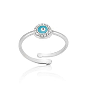Classic Blue Evil Eye Adjustable Ring In Sterling Silver